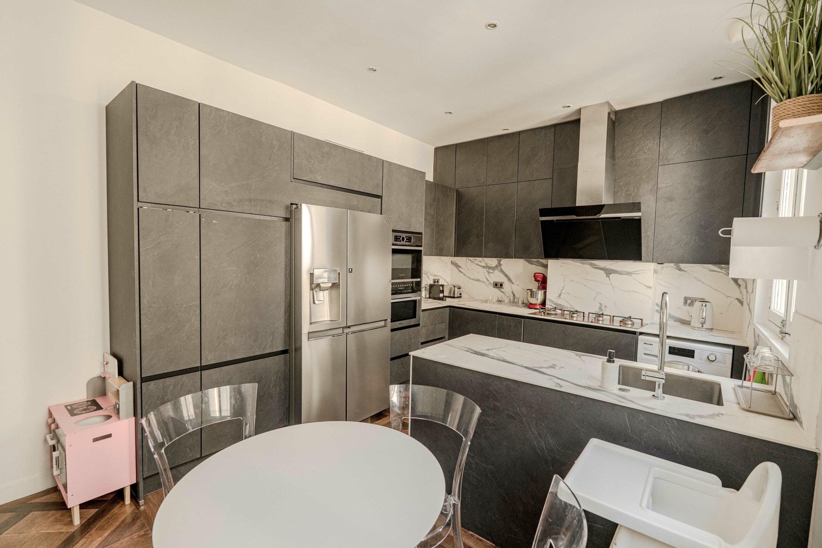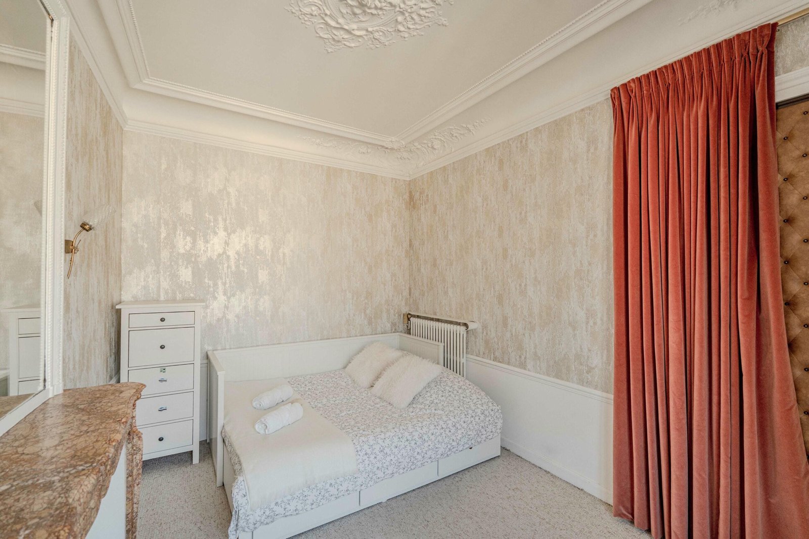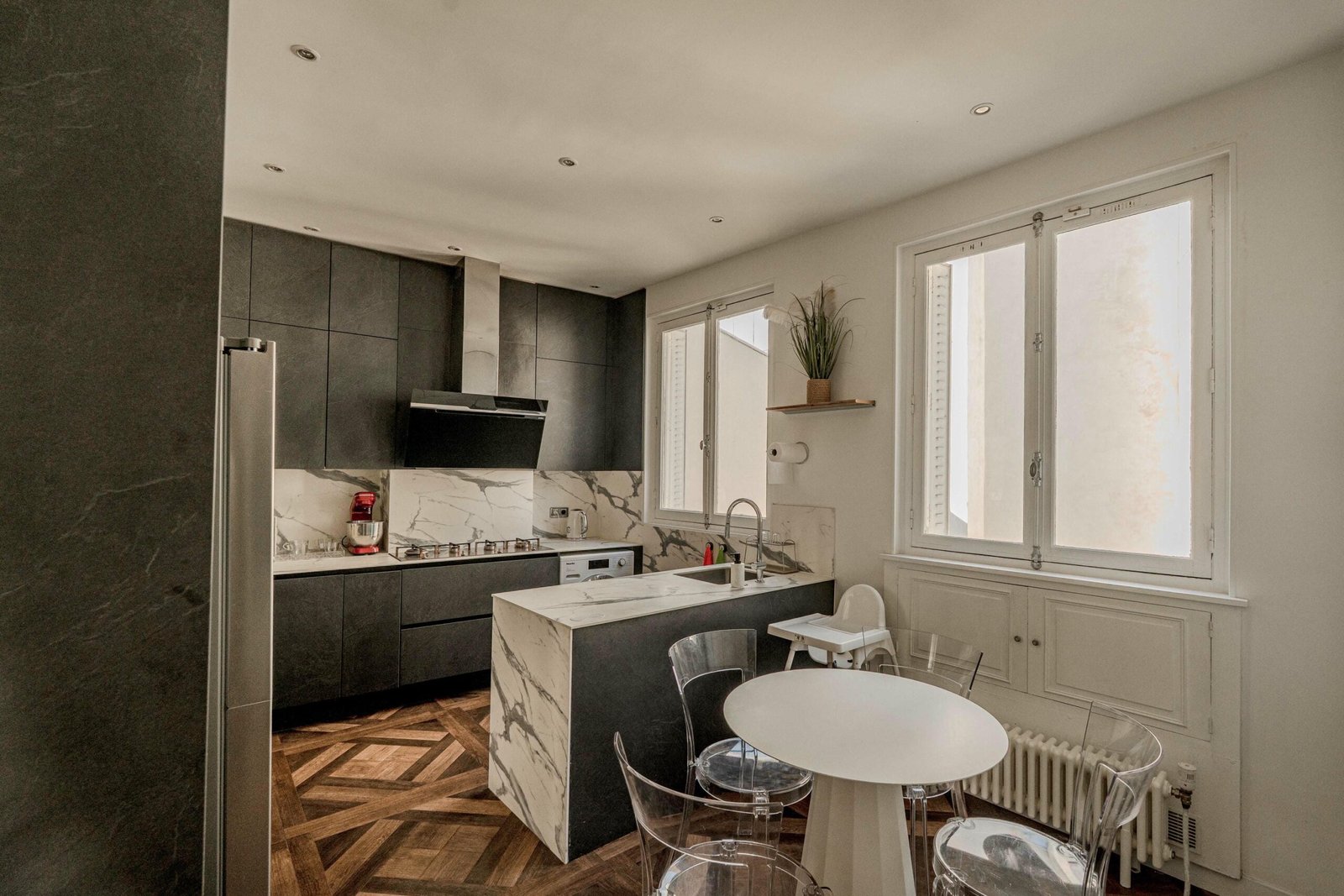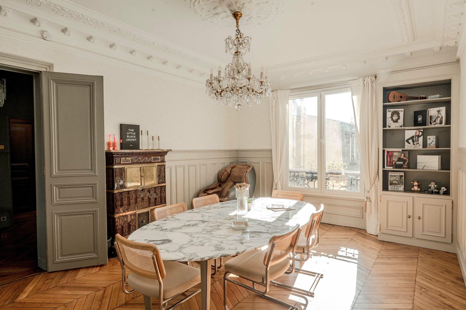 Located in the Saint-Lazare district in the 8th arrondissement of Paris, this apartment enjoys a highly central and well-connected setting in one of the city’s most dynamic areas. Saint-Lazare station is within walking distance, providing access to metro lines 3, 12, 13, and 14, as well as Transilien L and J lines and RER E. The neighborhood offers immediate access to a wide range of shops, cafés, restaurants, and daily conveniences, while the renowned department stores Galeries Lafayette and Printemps are just 8 and 6 minutes away on foot respectively.