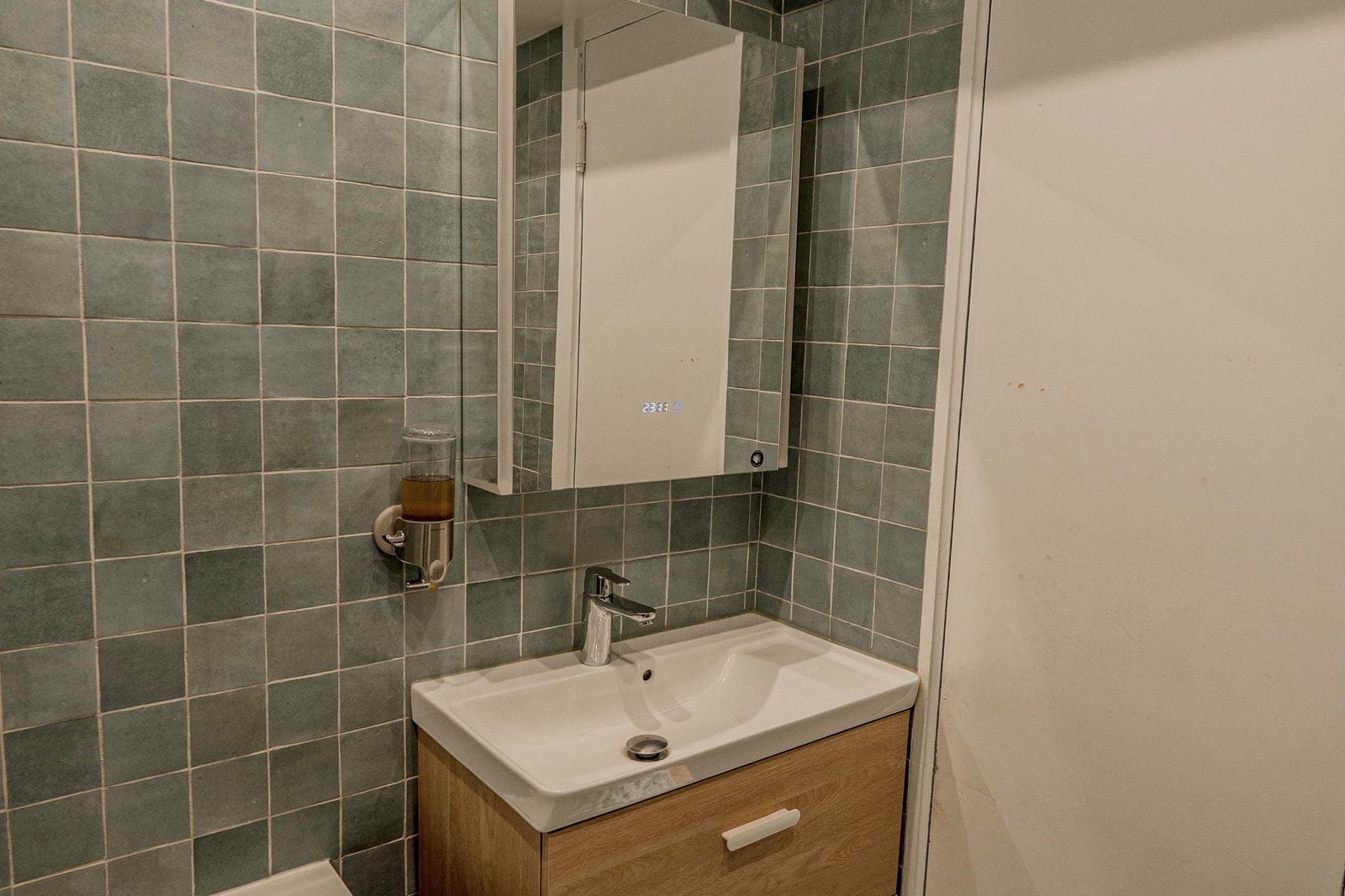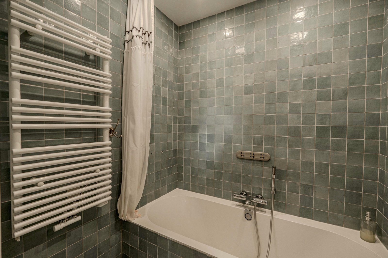 The apartment is situated in a building with elevator access and offers self check-in.